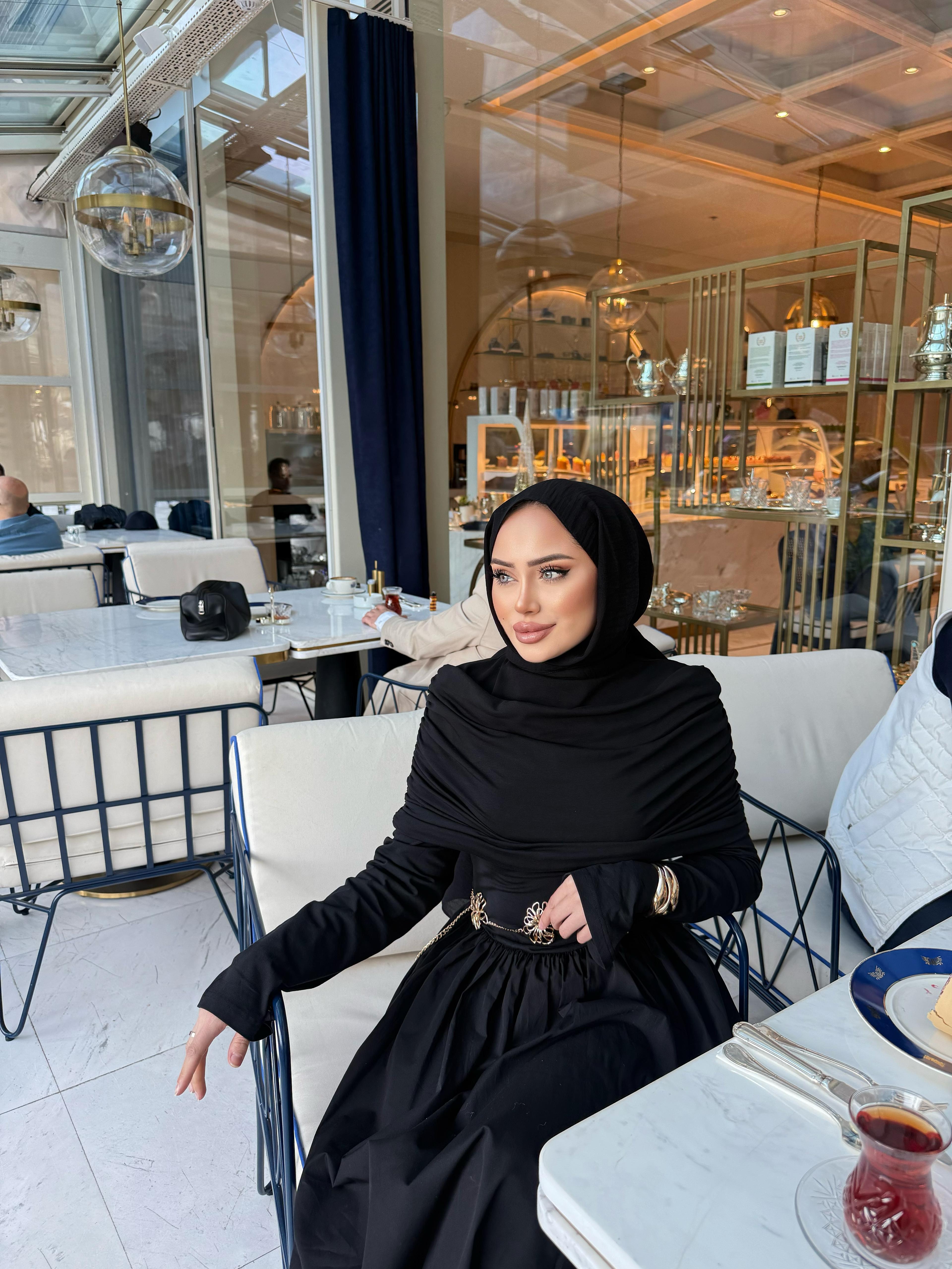 Melda Yaka Detaylı Elbise Siyah (ÖN SİPARİŞ)
