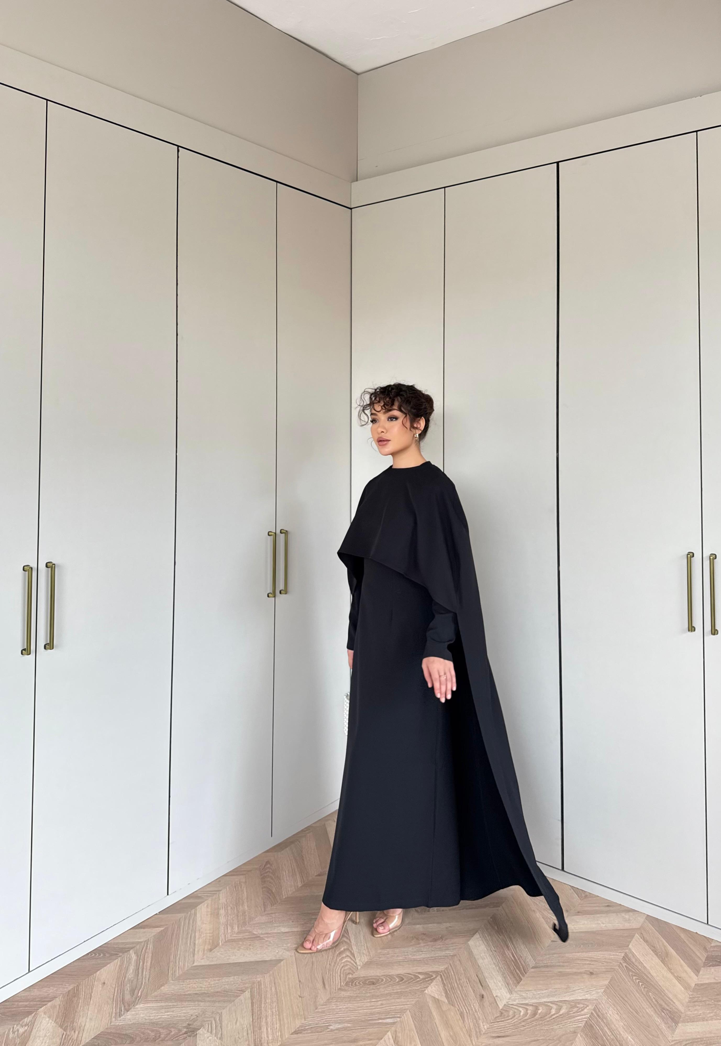 elbs-1176H&R ButikNehir Pelerinli Elbise Siyah