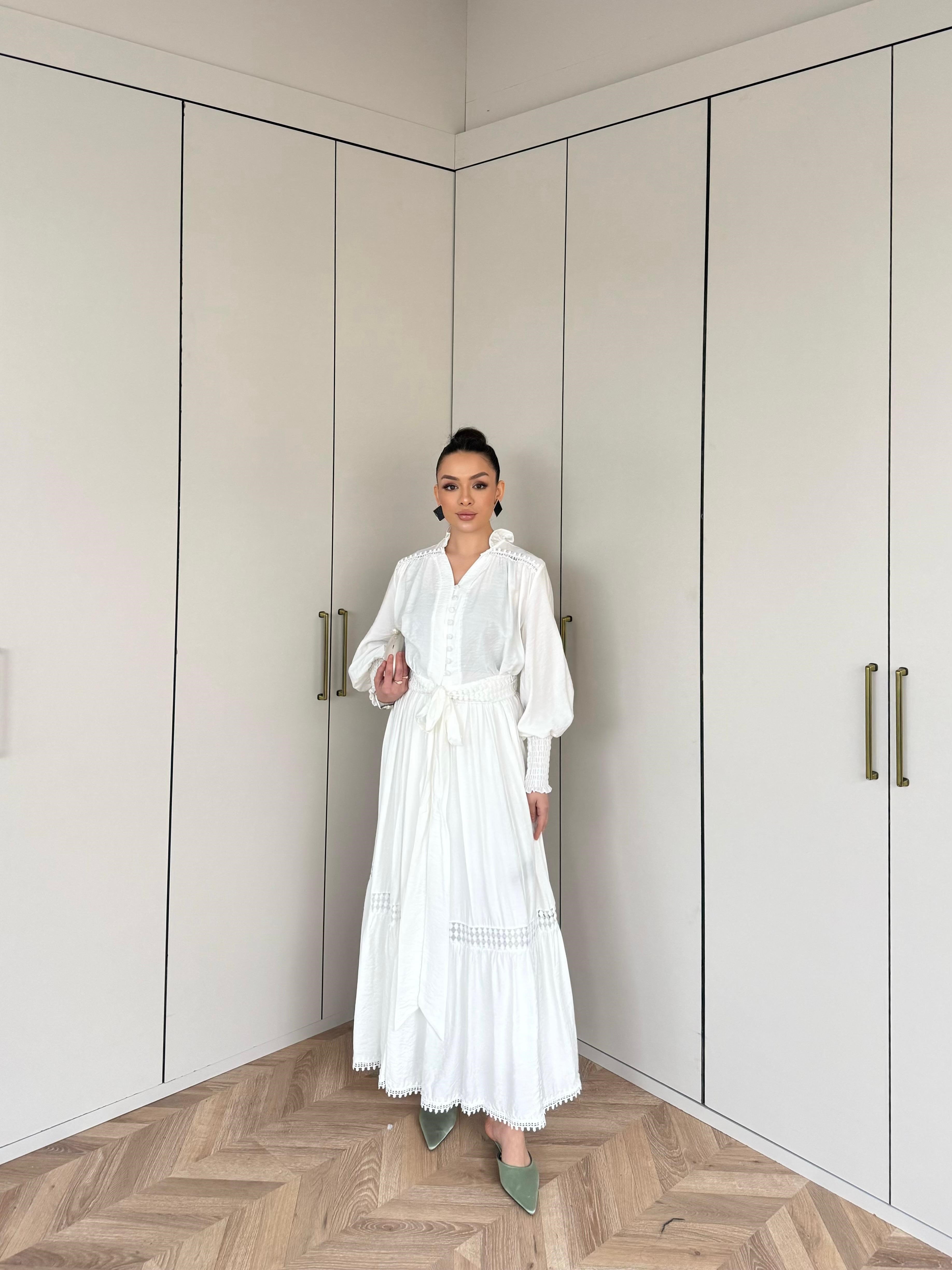 NG5738-Sezal Dantel Detaylı Etekli Takım Beyaz