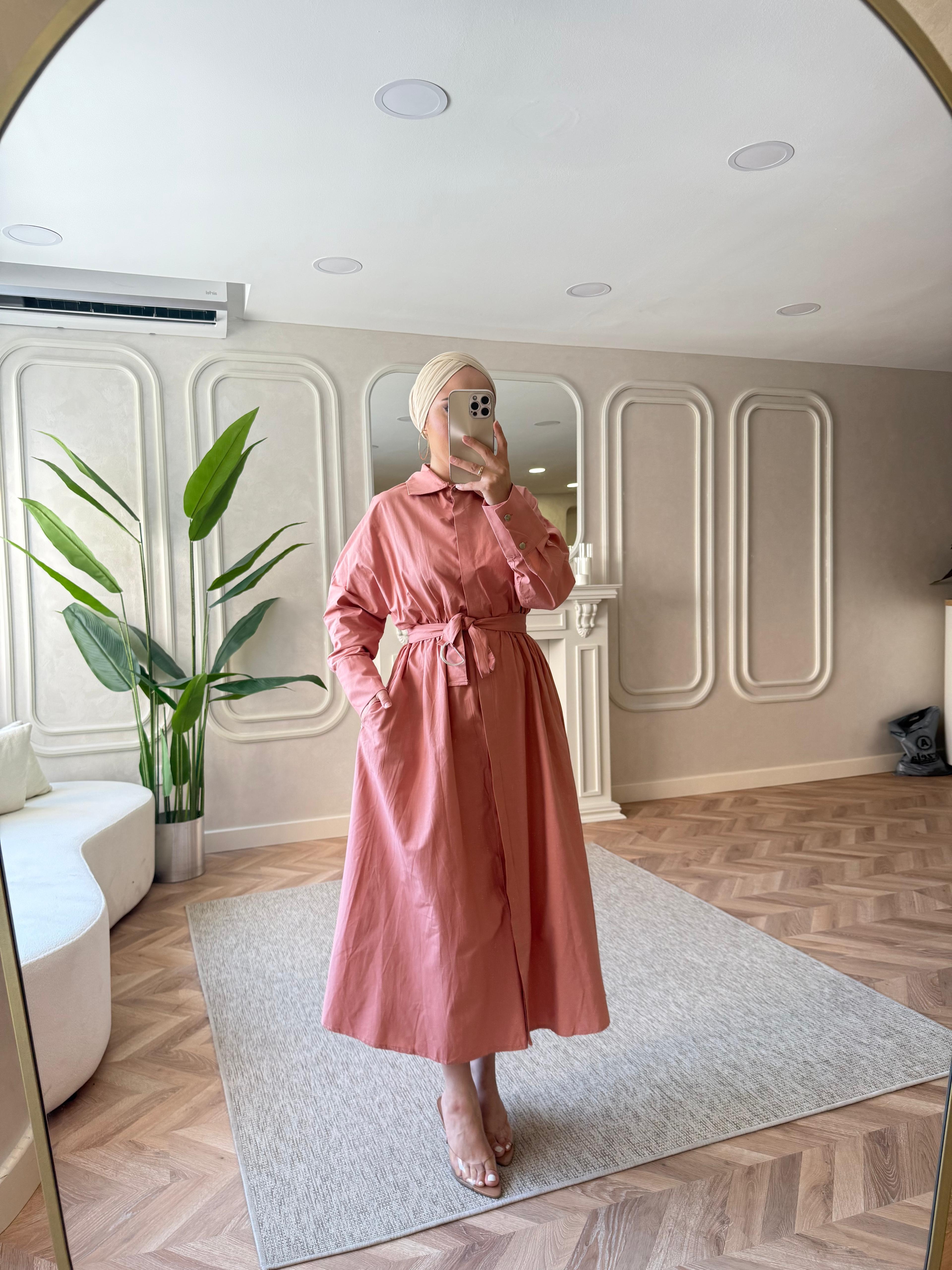 elbs-1172H&R ButikNos Düğmeli Elbise Gül Kurusu