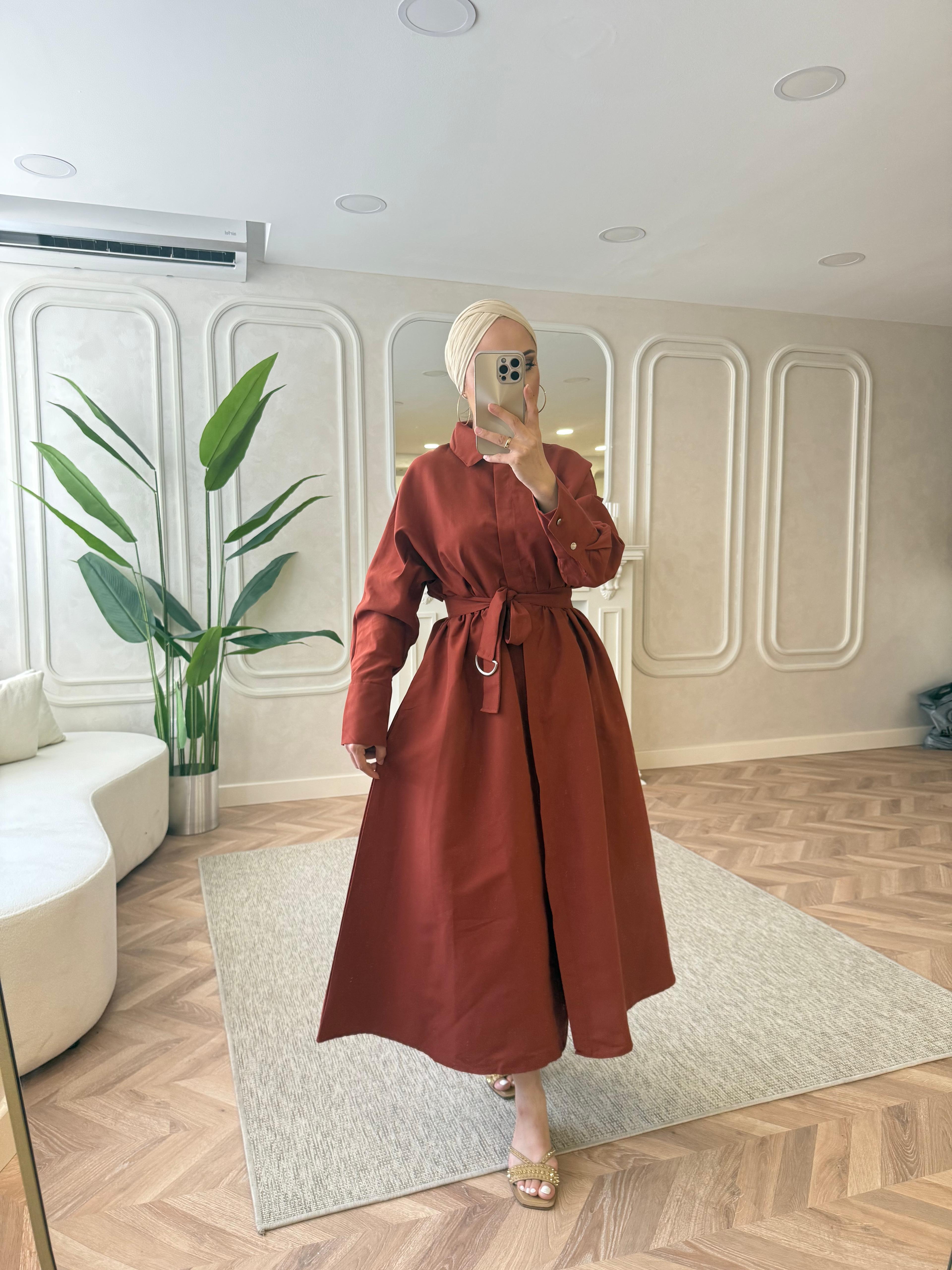 elbs-1172H&R ButikNos Düğmeli Elbise Kiremit