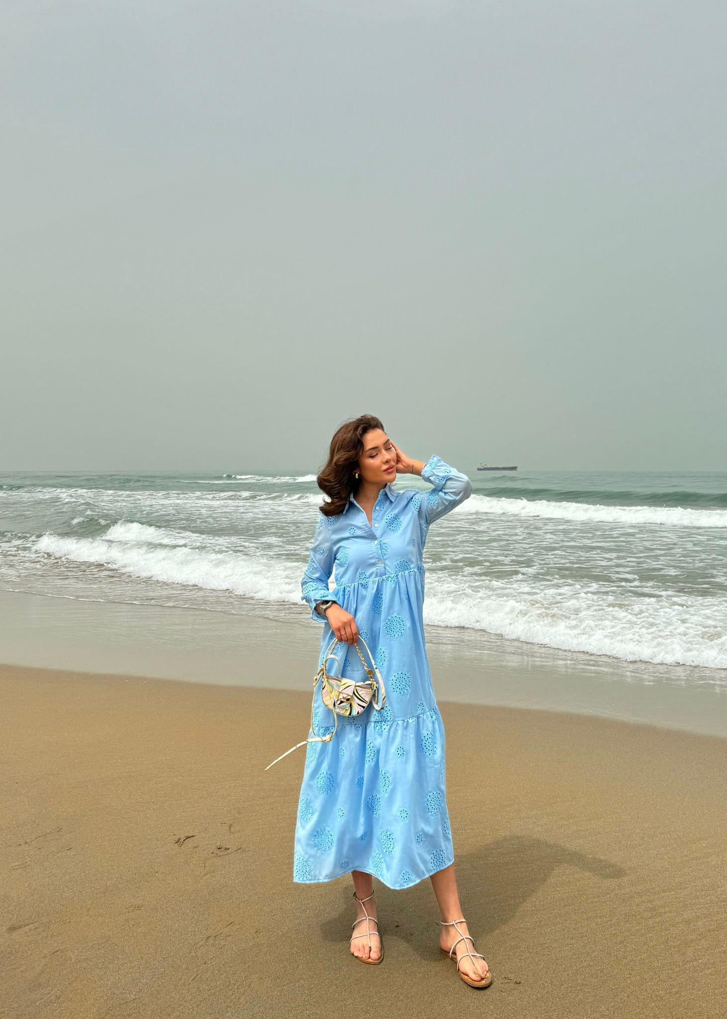 elbs-1240H&R ButikNula Fisto Elbise Mavi
