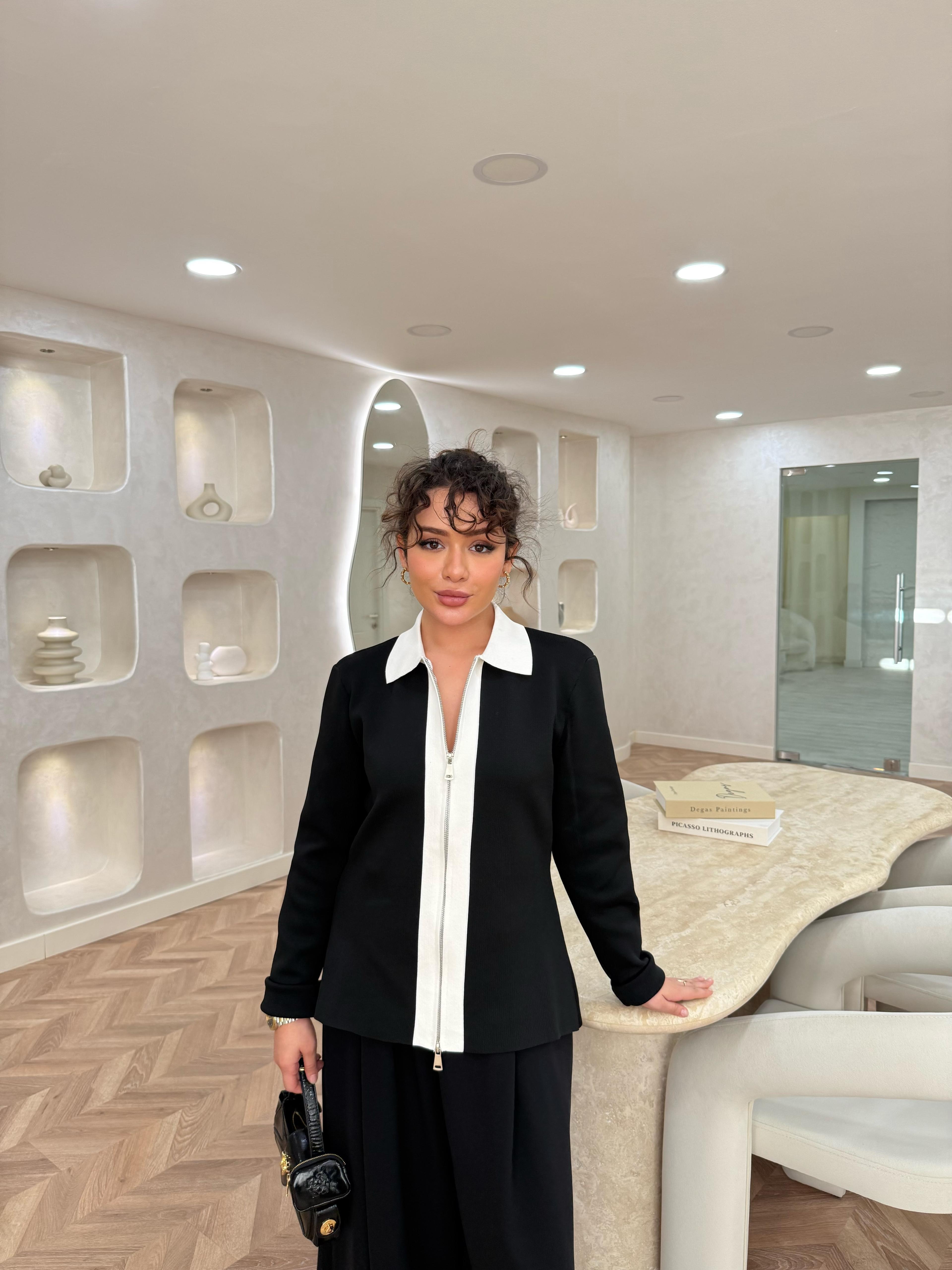 KAZK-575H&R ButikAda Ön Fermuarlı Çelik Örme Triko Siyah