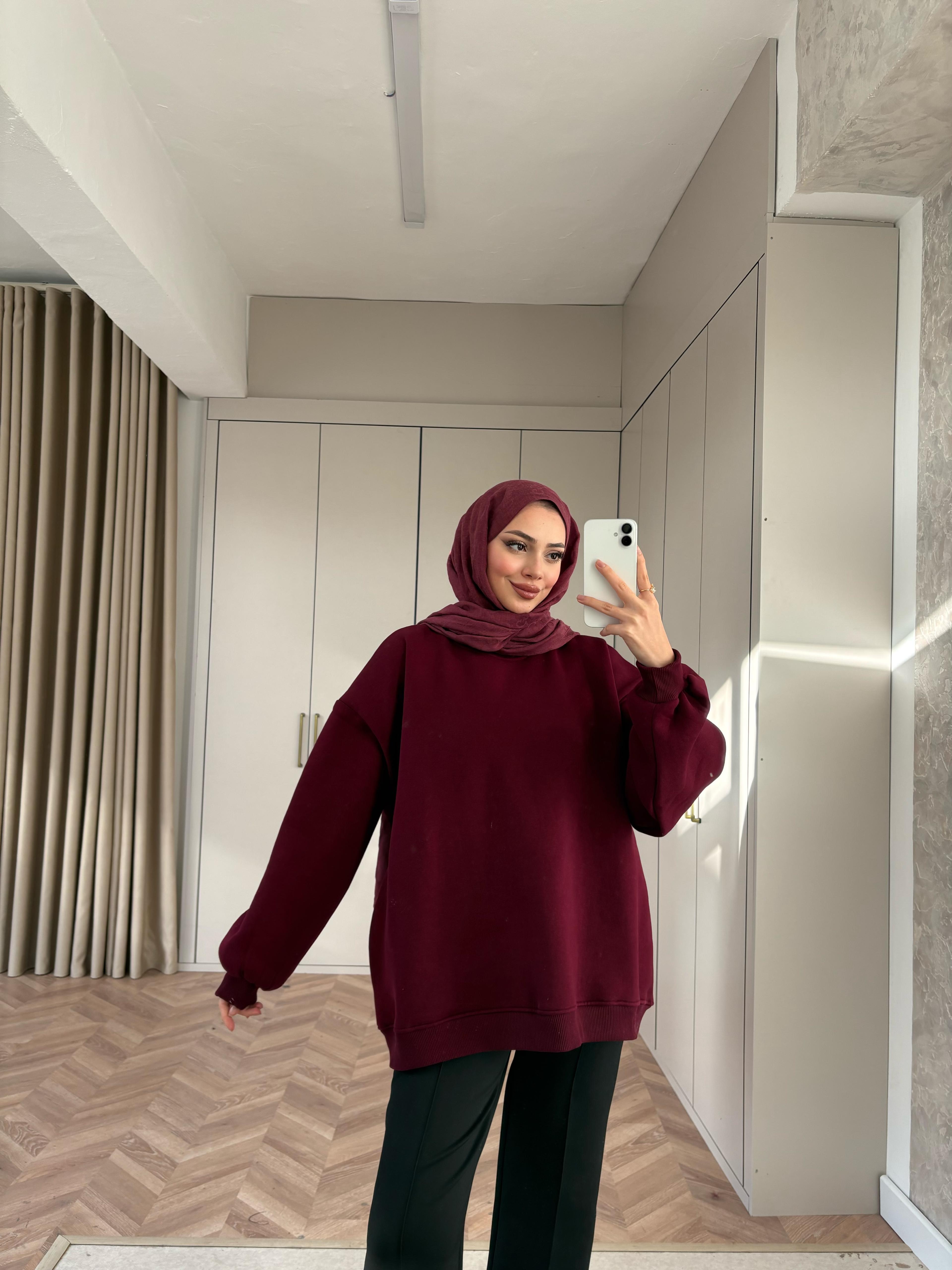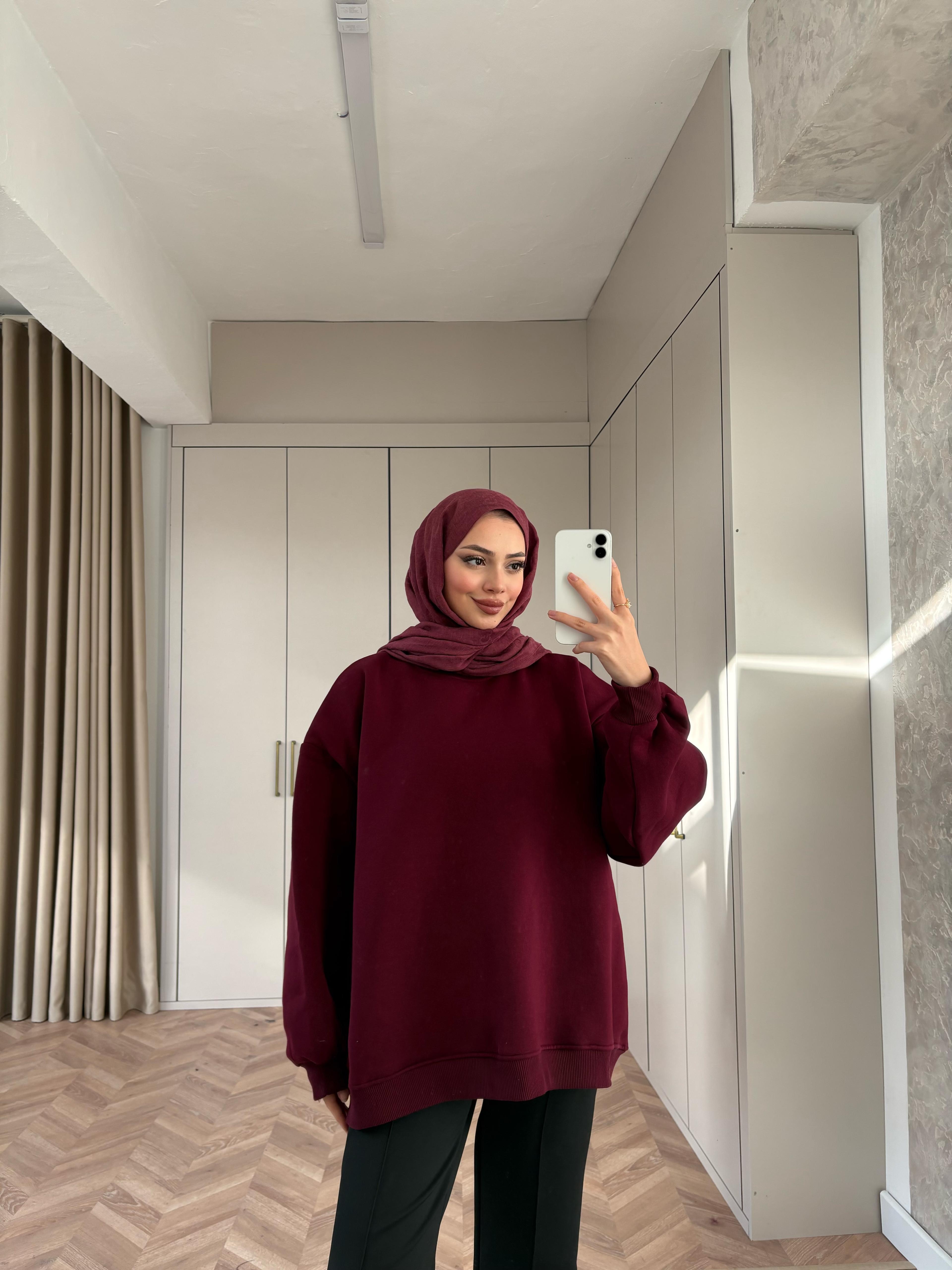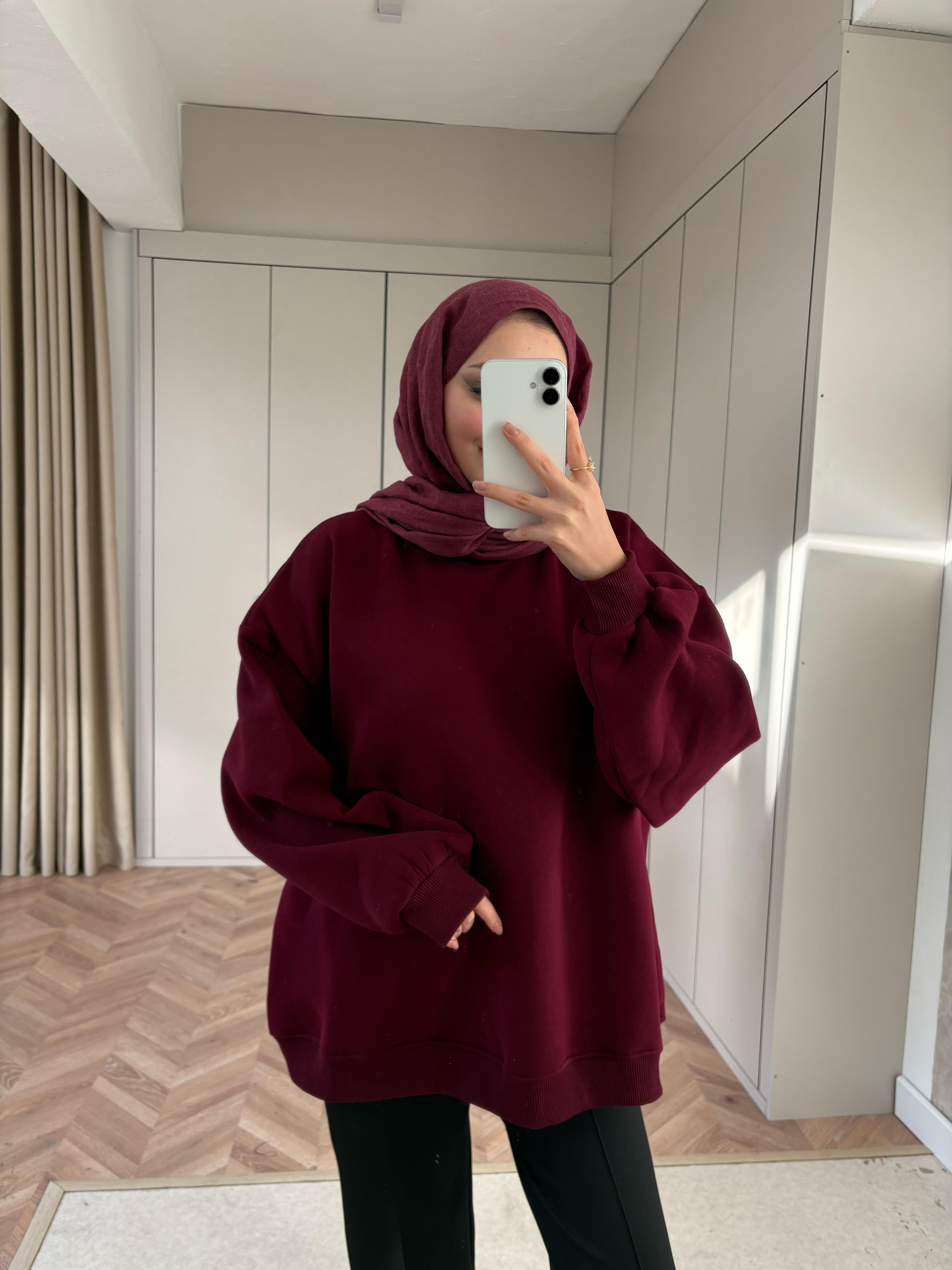 Oversize 3 İplik Sweat Bordo