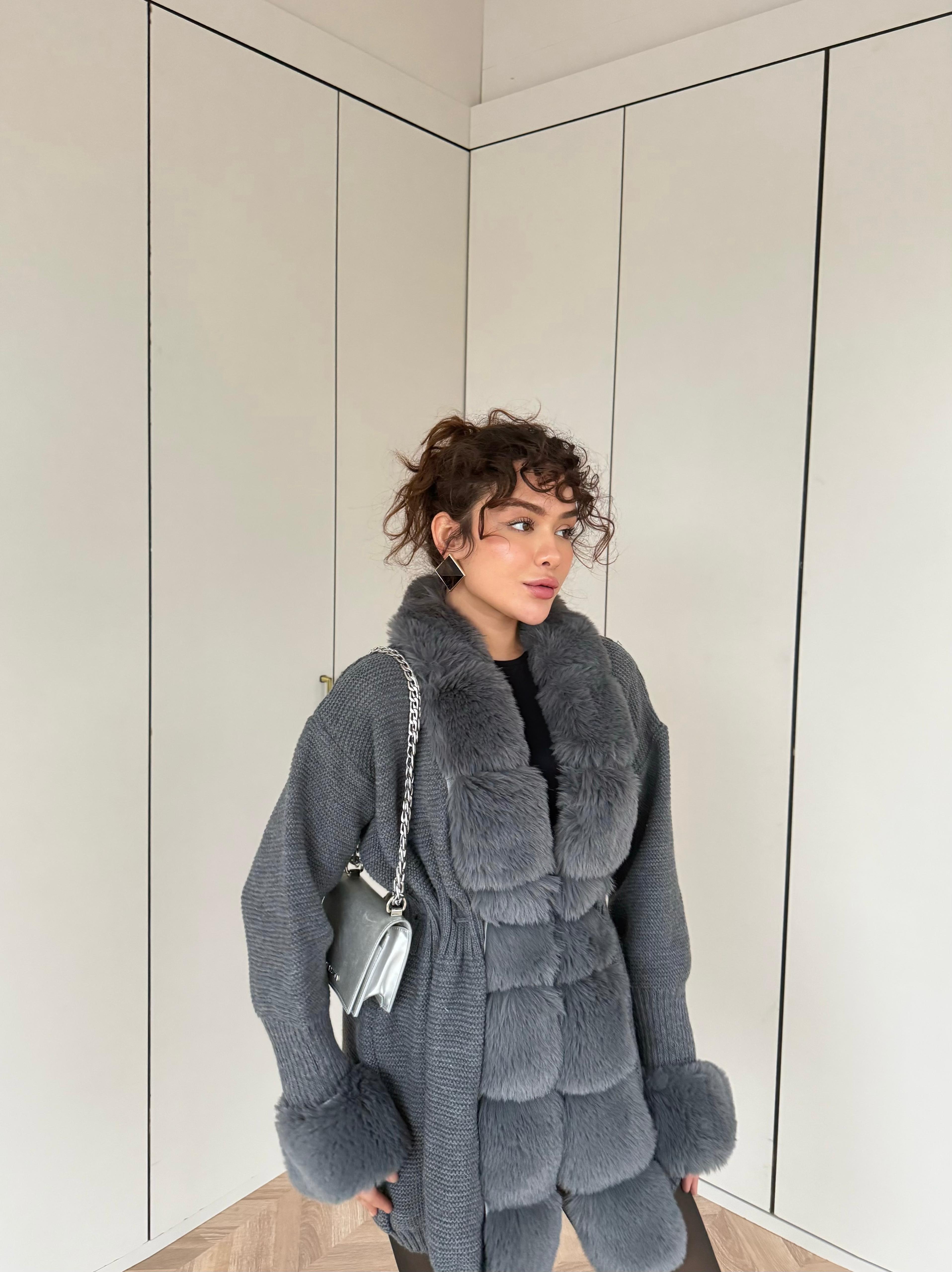 Pera Kürk Detaylı Hırka Antrasit