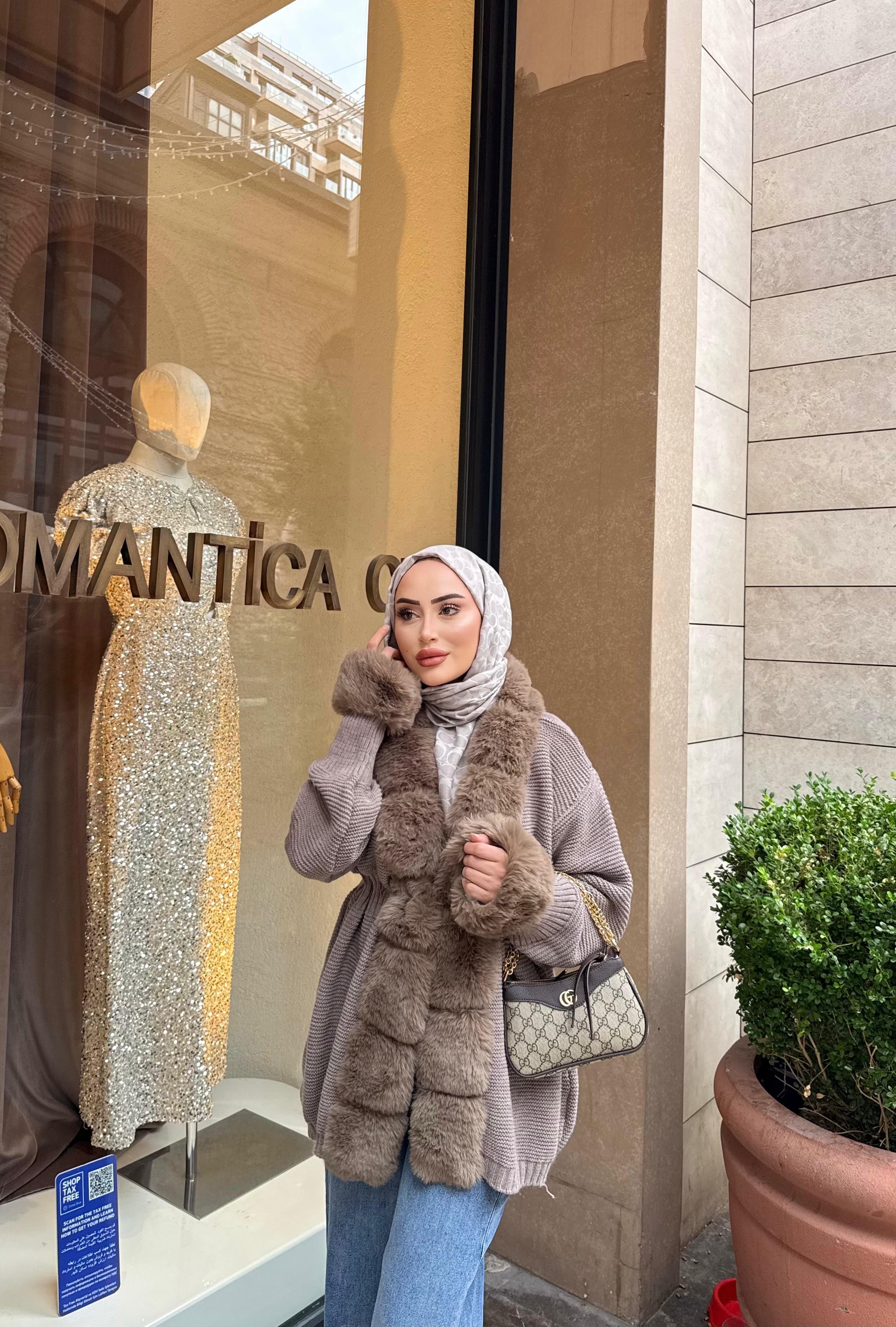 HIRKA-98H&R ButikPera Kürk Detaylı Hırka Vizon
