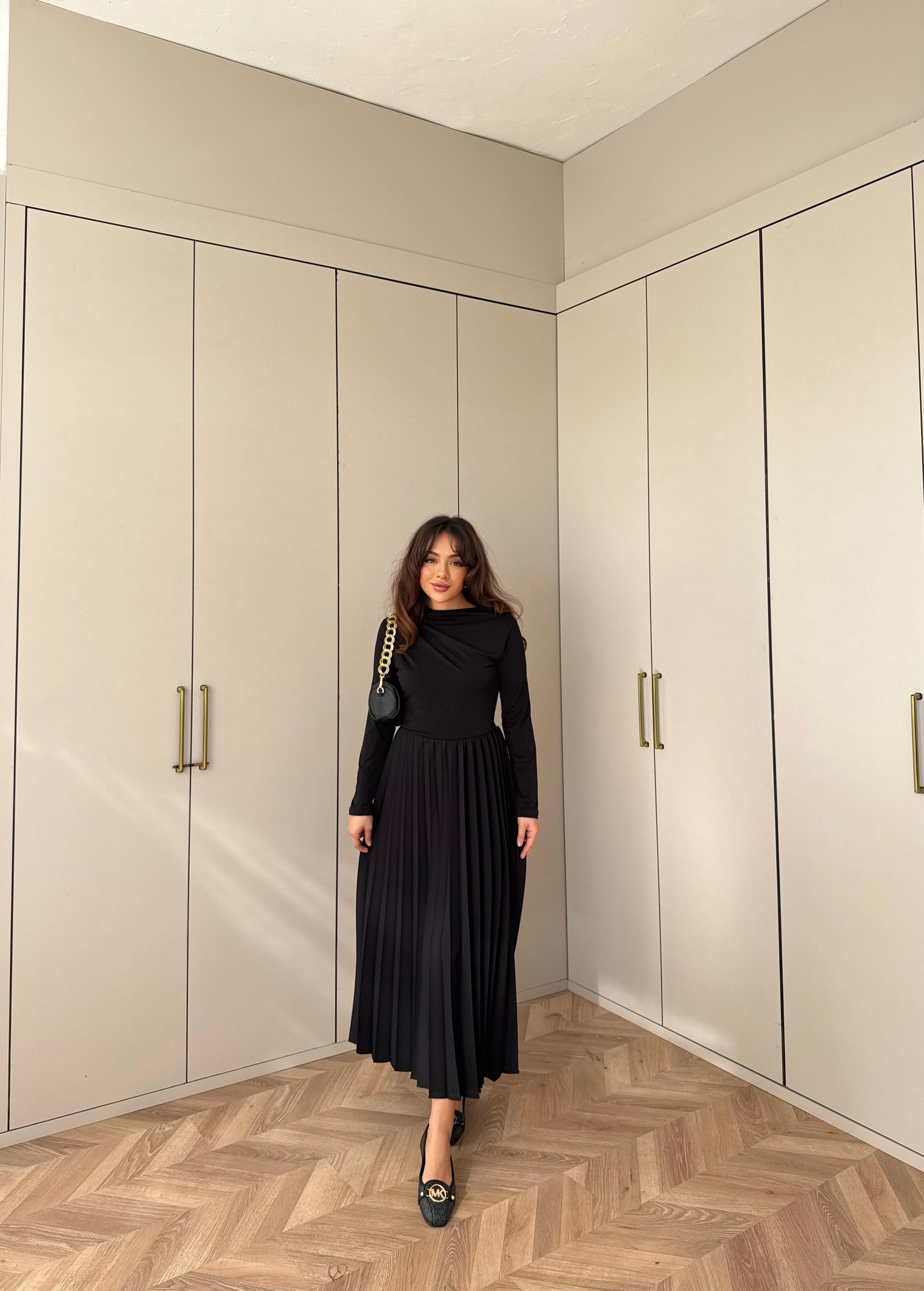 ELBS-013H&R ButikPilise Detaylı Elbise Siyah