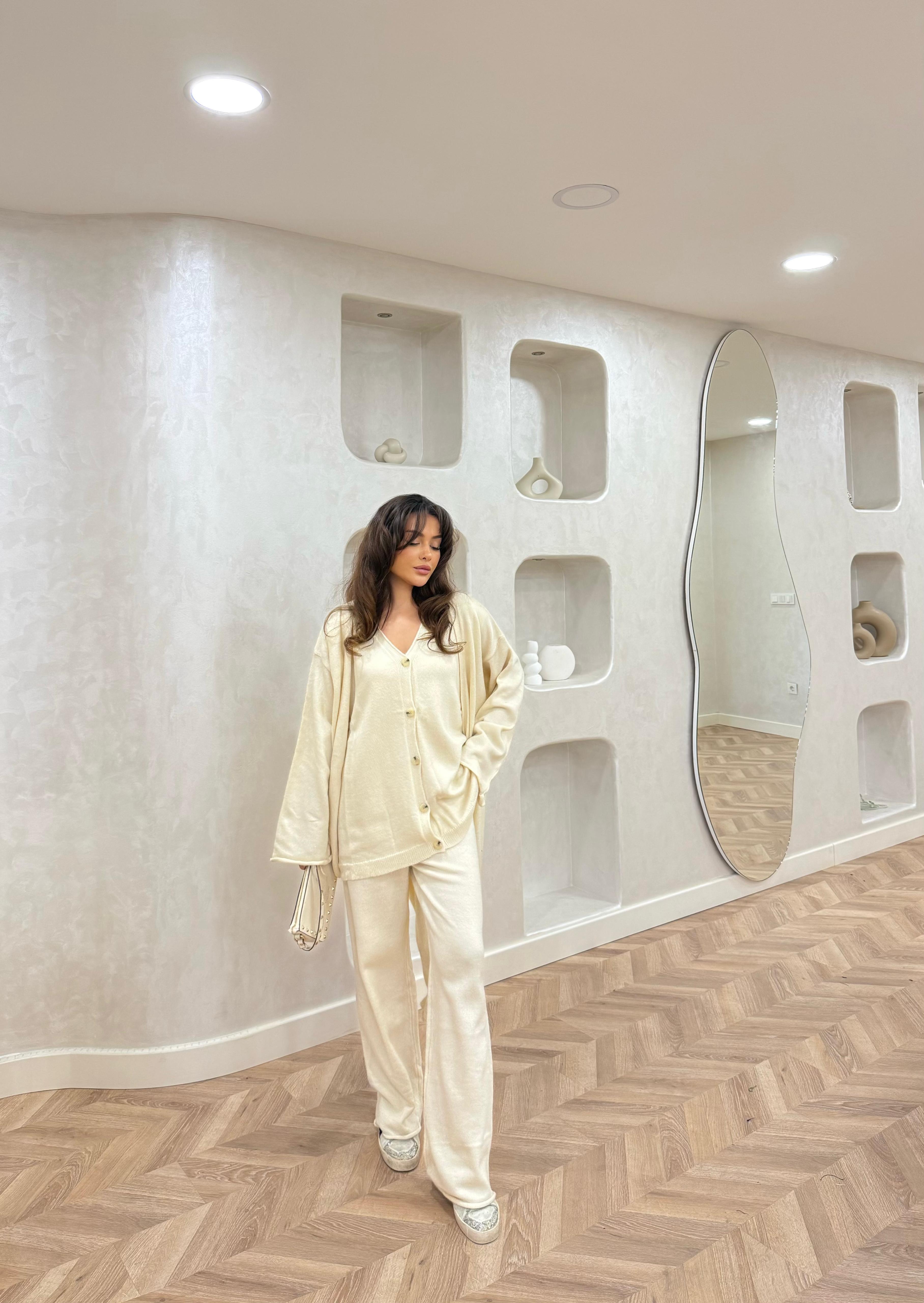 TAKM-1823H&R ButikQalen 3 Lü Triko Takım Ekru