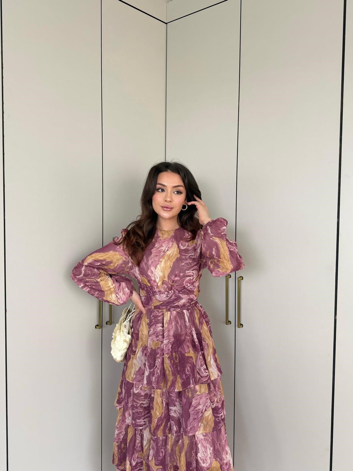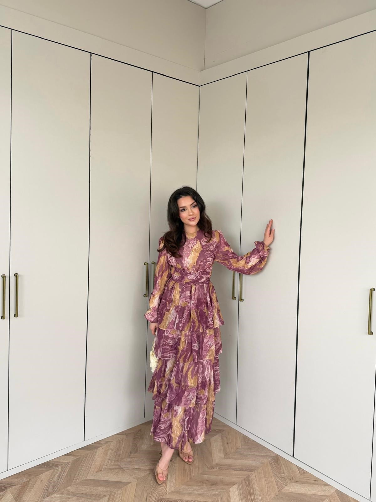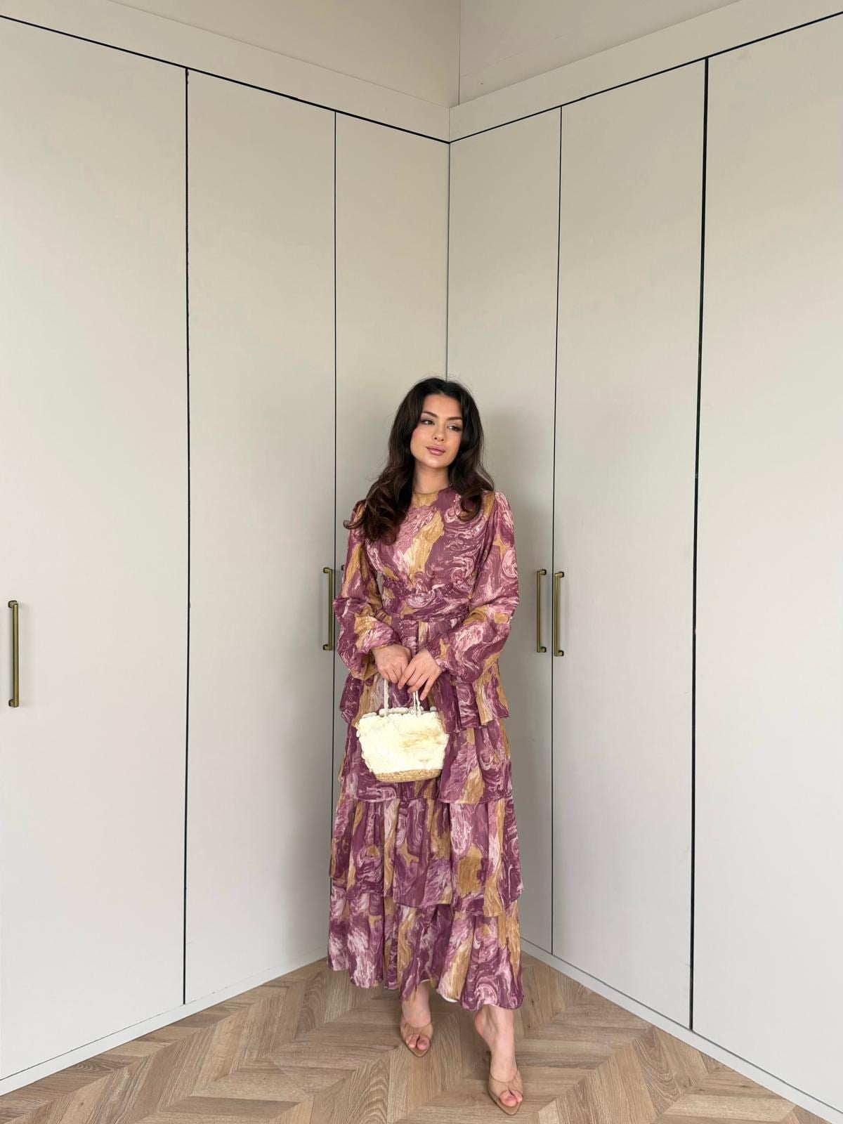 Qas- Ezol Katkat Renkli Elbise Mürdüm