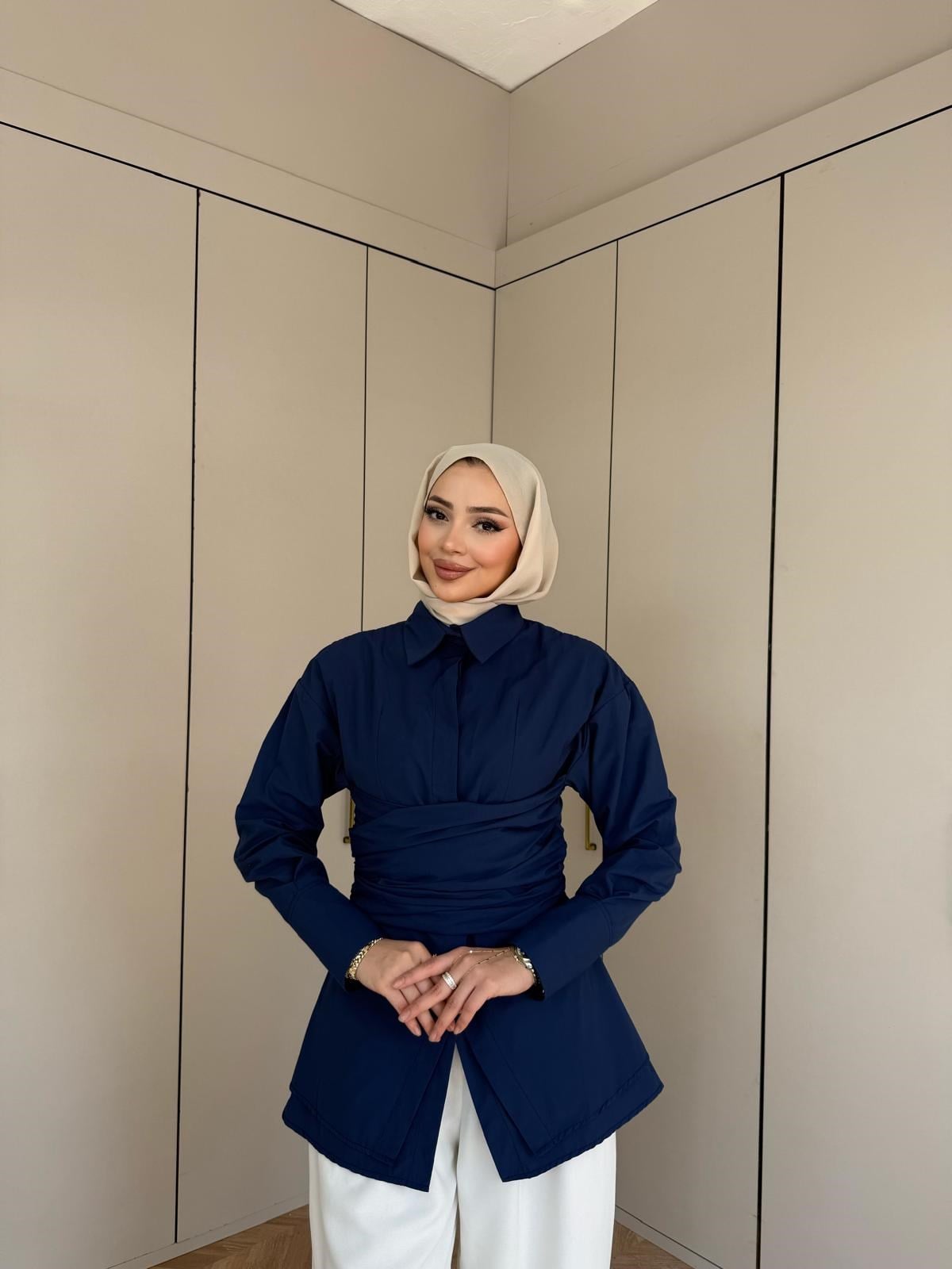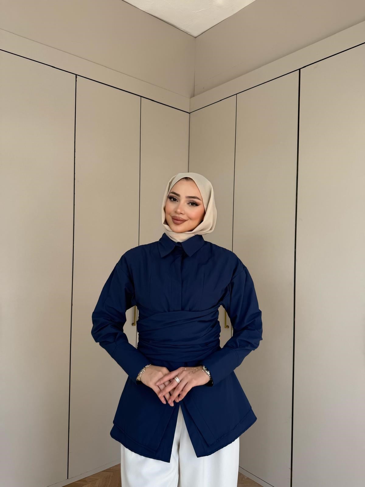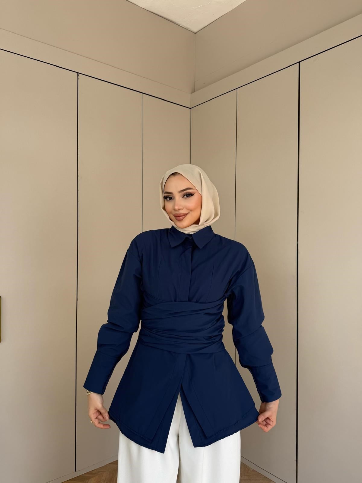 Qus- Eline Bel Bağlamalı Gömlek Lacivert