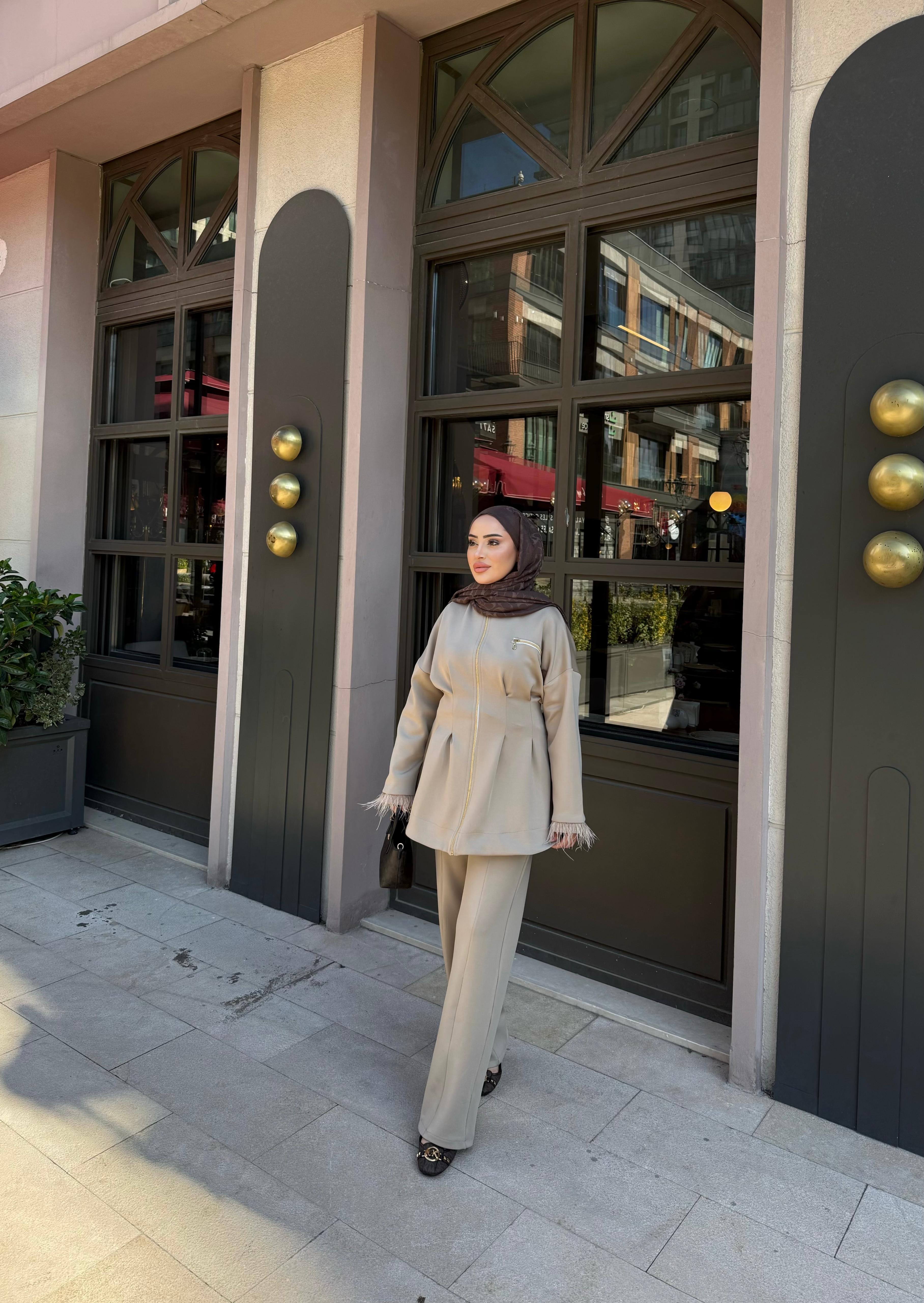 TAKM-1773H&R ButikRadis Scuba Kürk Detaylı Takım Bej
