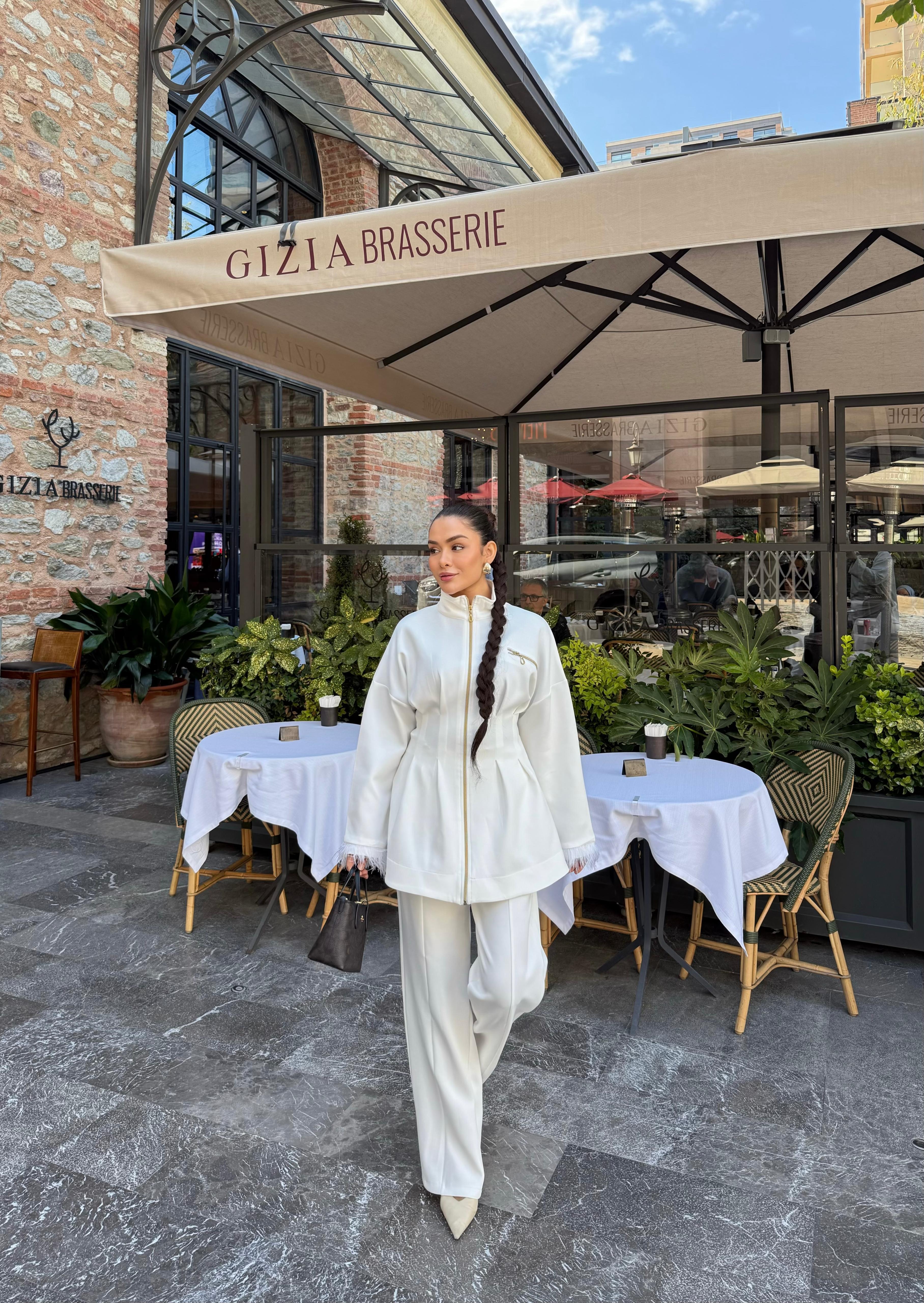 Radis Scuba Kürk Detaylı Takım Beyaz