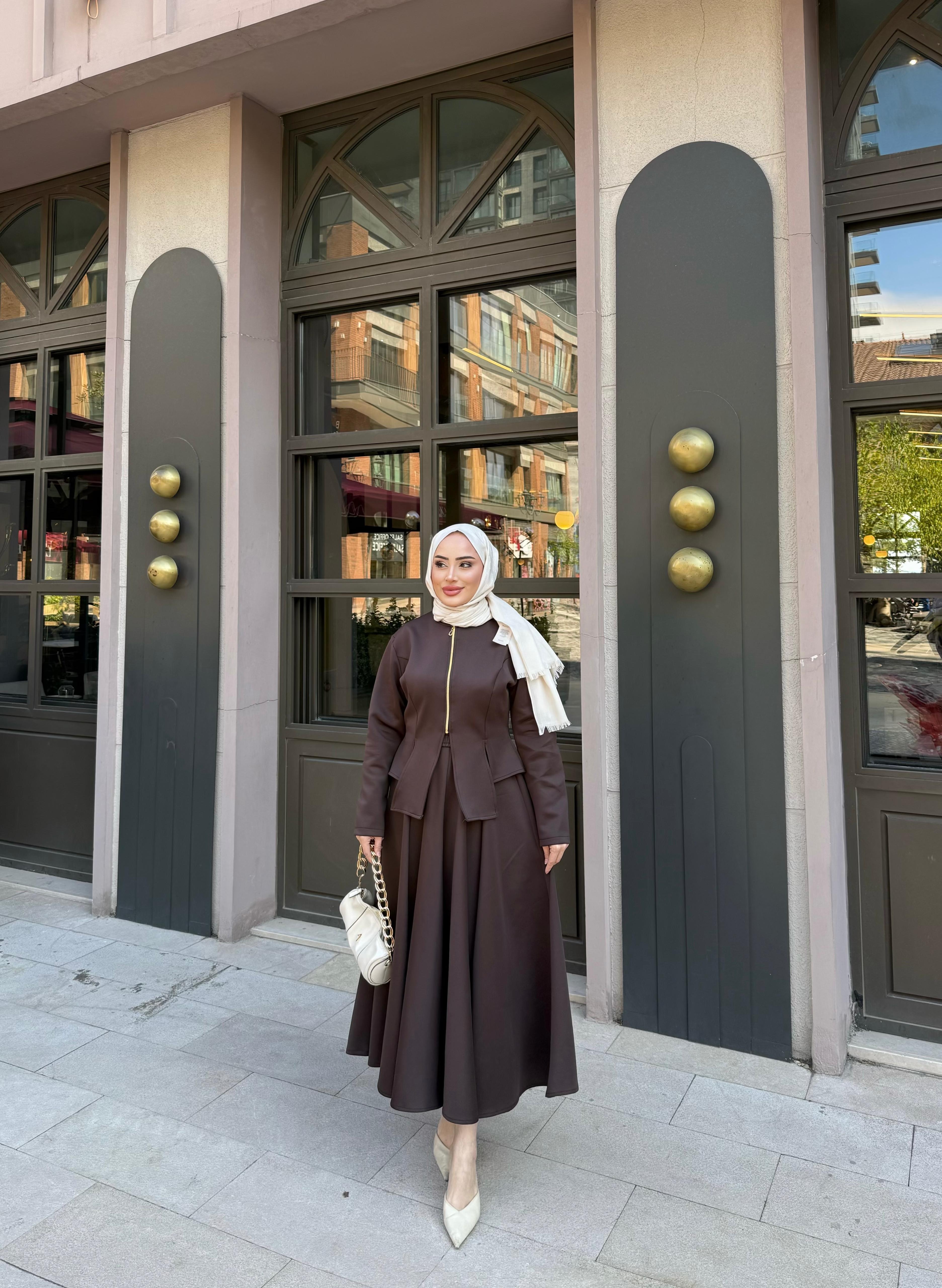 TAKM-1762H&R ButikSara Etekli Takım Kahverengi