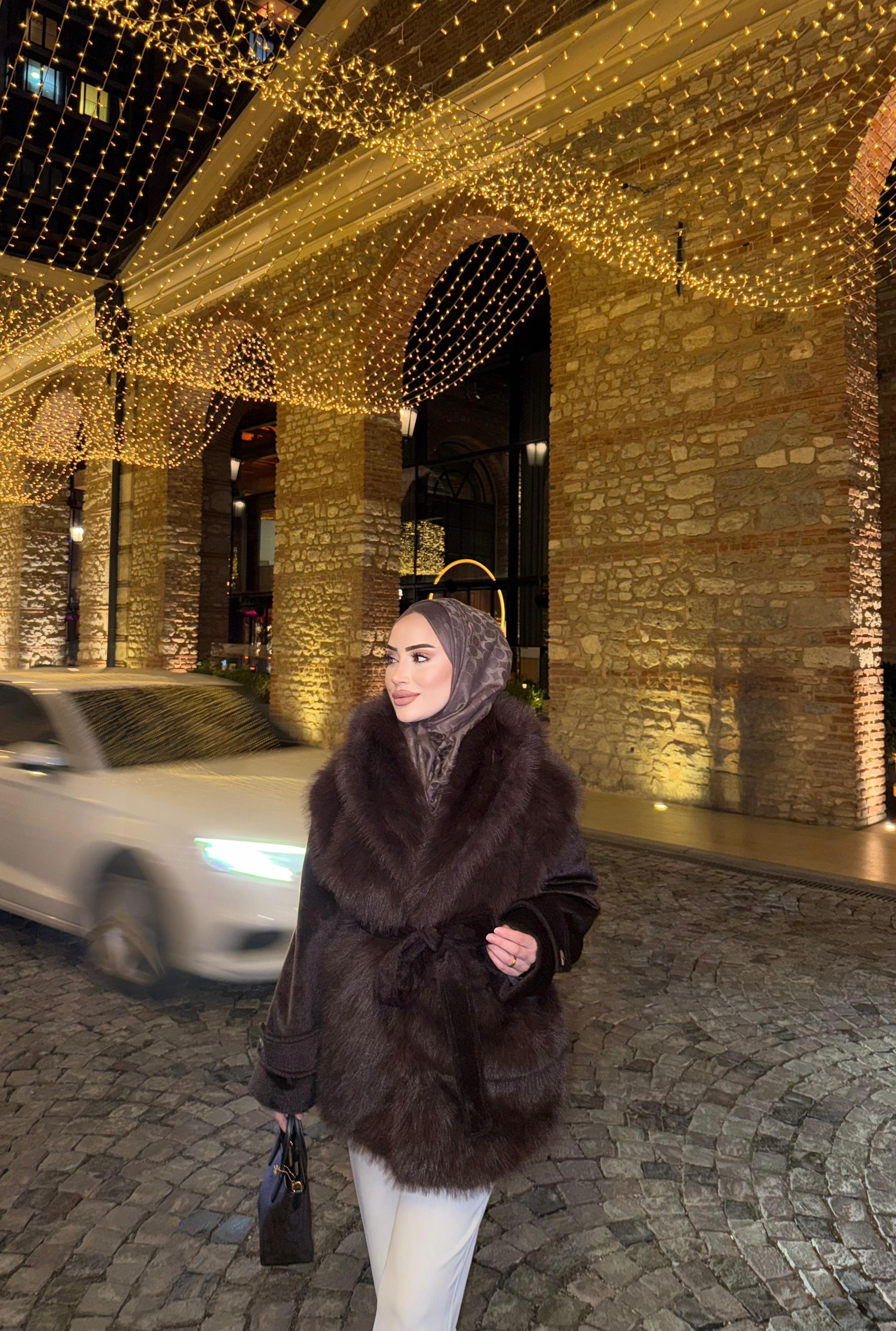 MT0124H&R ButikSeta Kürk Mont Kahverengi
