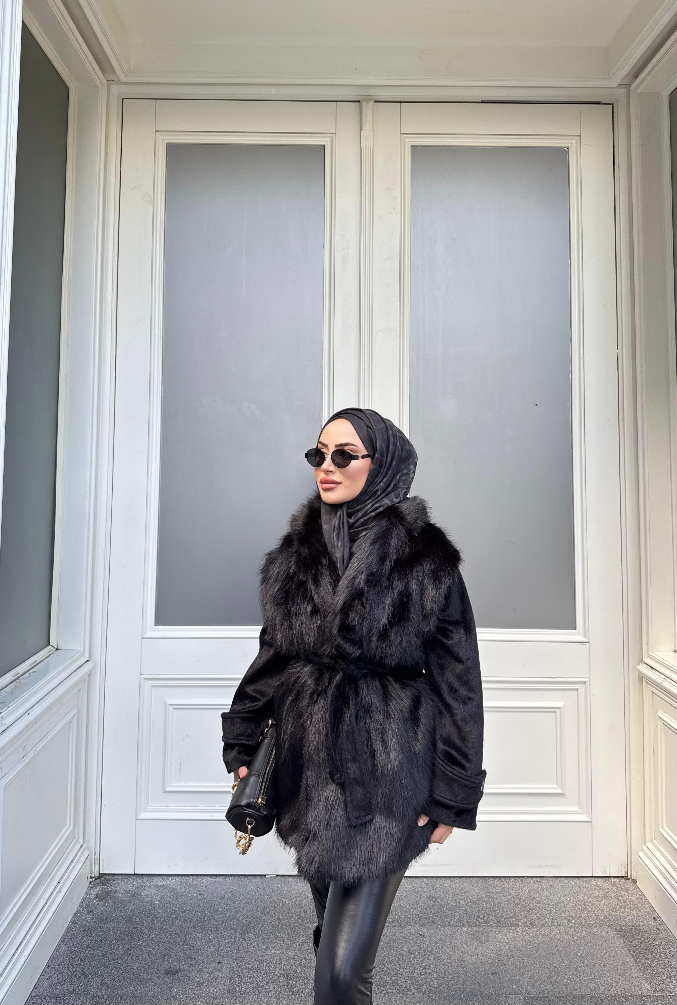MT0124H&R ButikSeta Kürk Mont Siyah