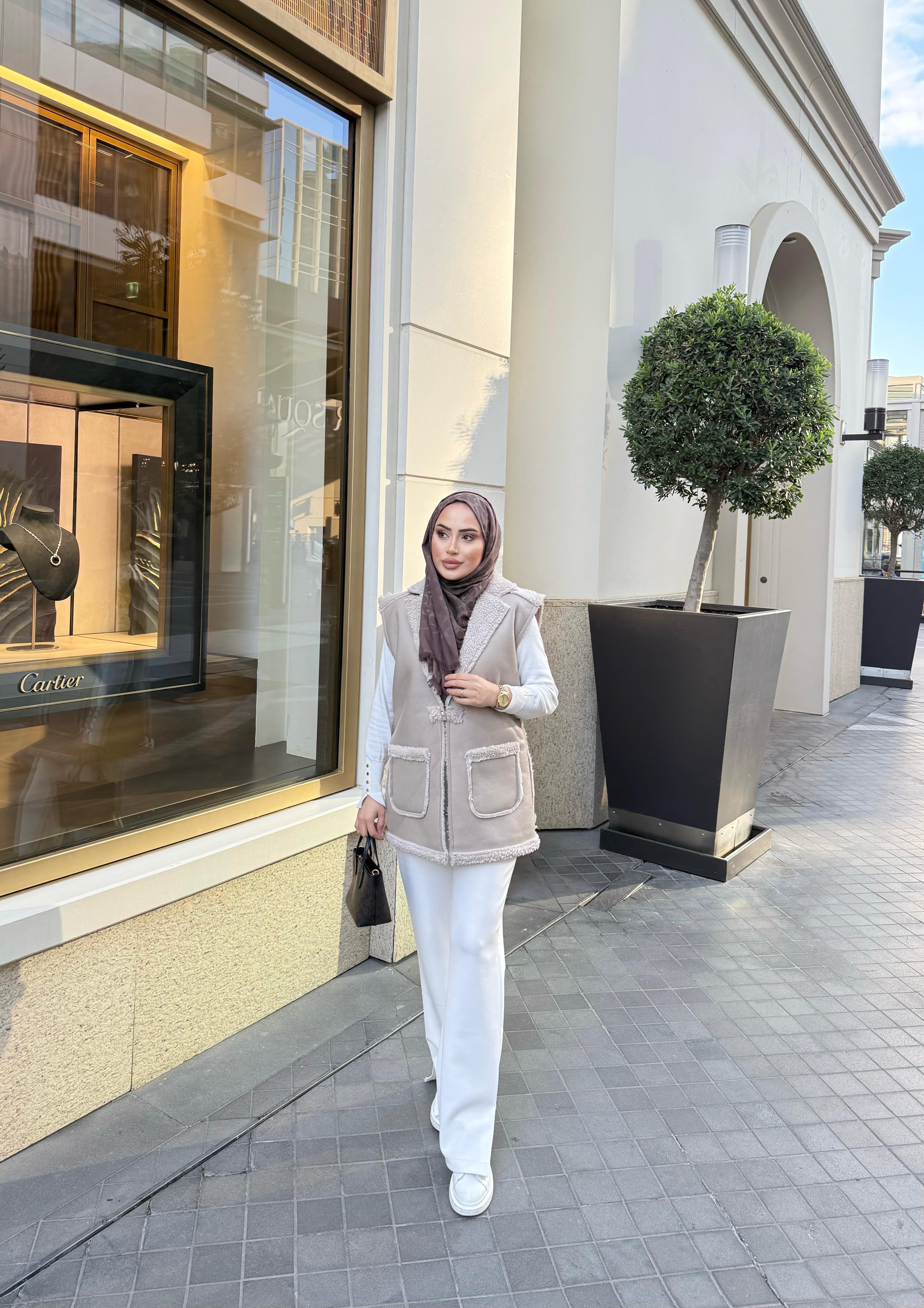 YELEK-288H&R ButikSofia İçi Kürk Yelek Vizon