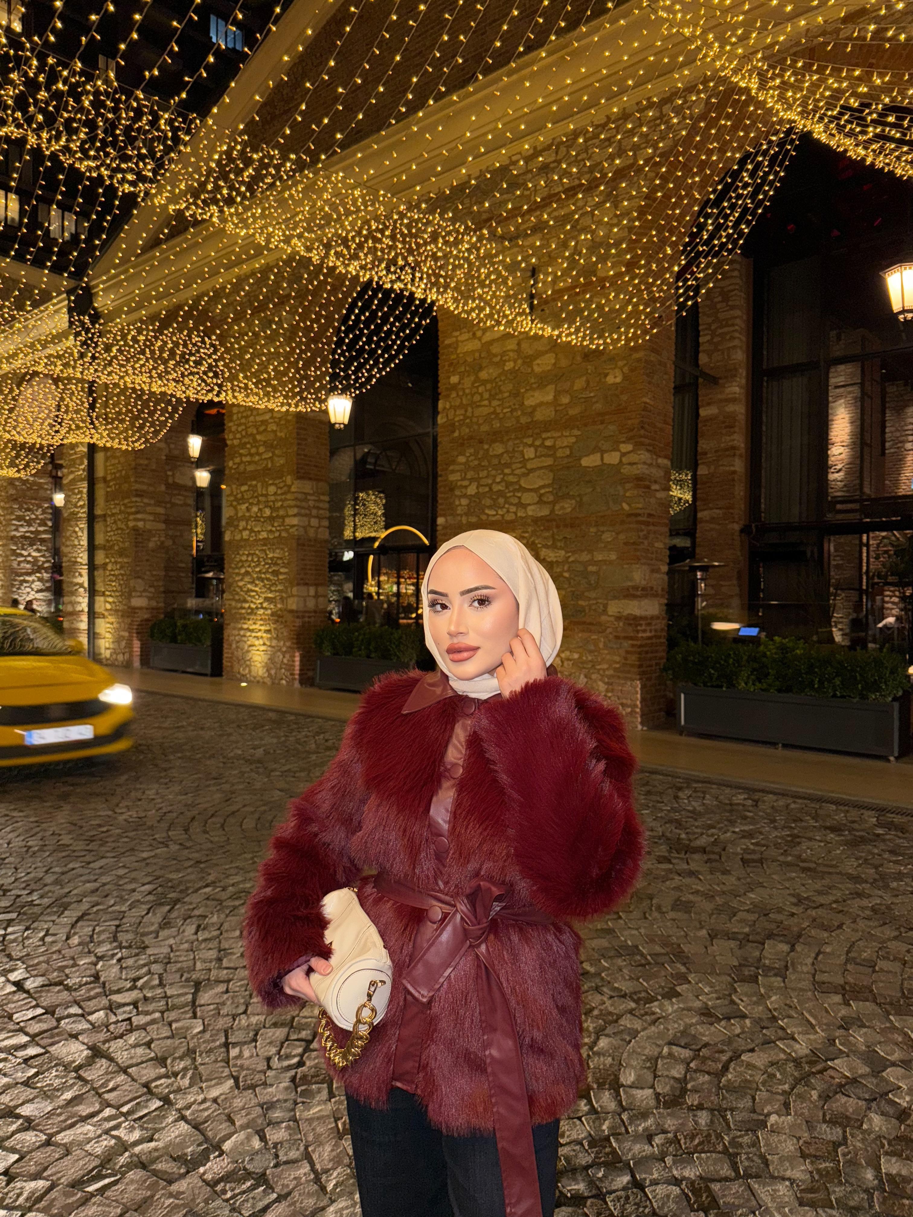 MNT-006H&R ButikWes Kürk Mont Bordo
