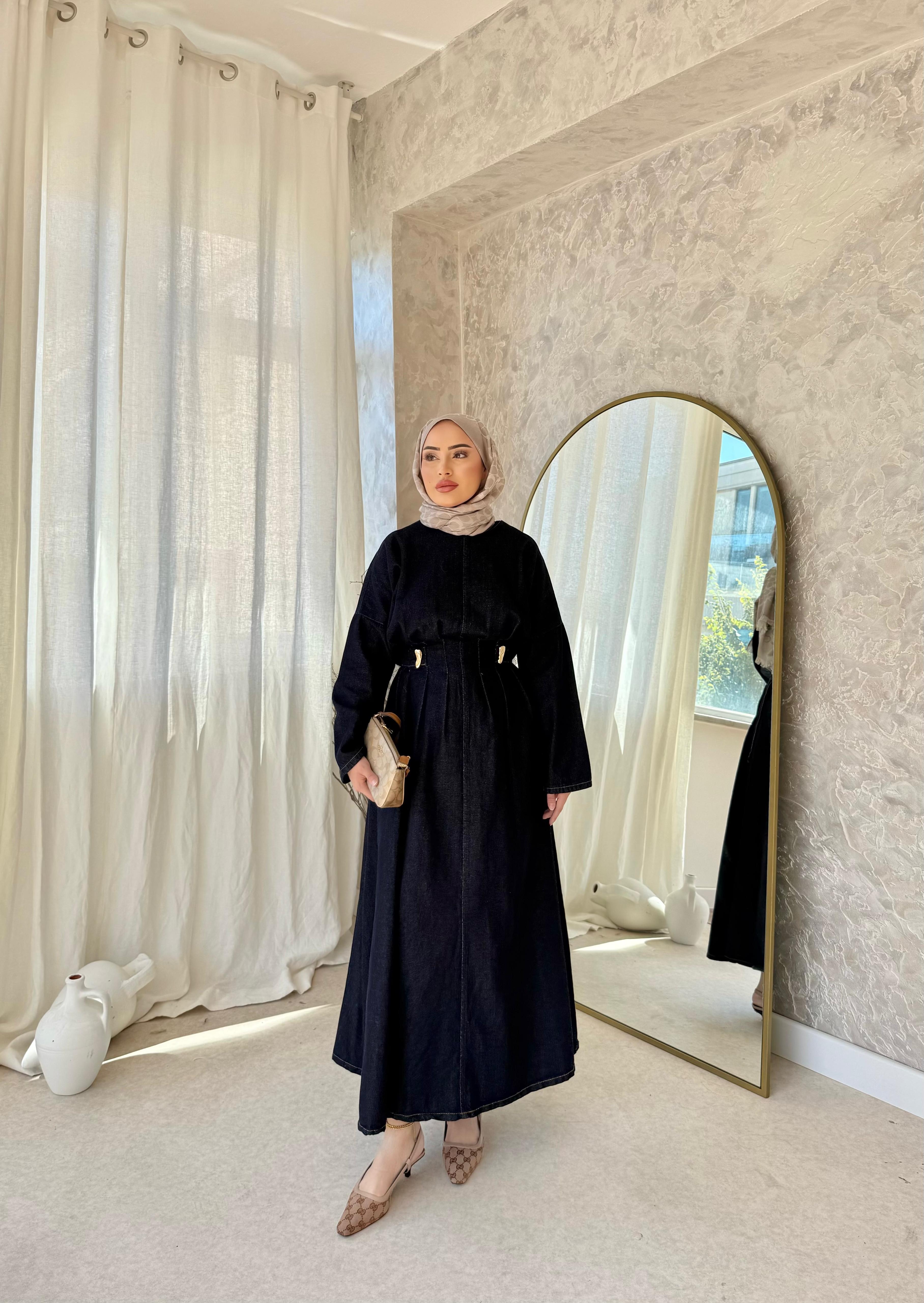 ELBS-007H&R ButikYanı Detaylı Kot Elbise Lacivert