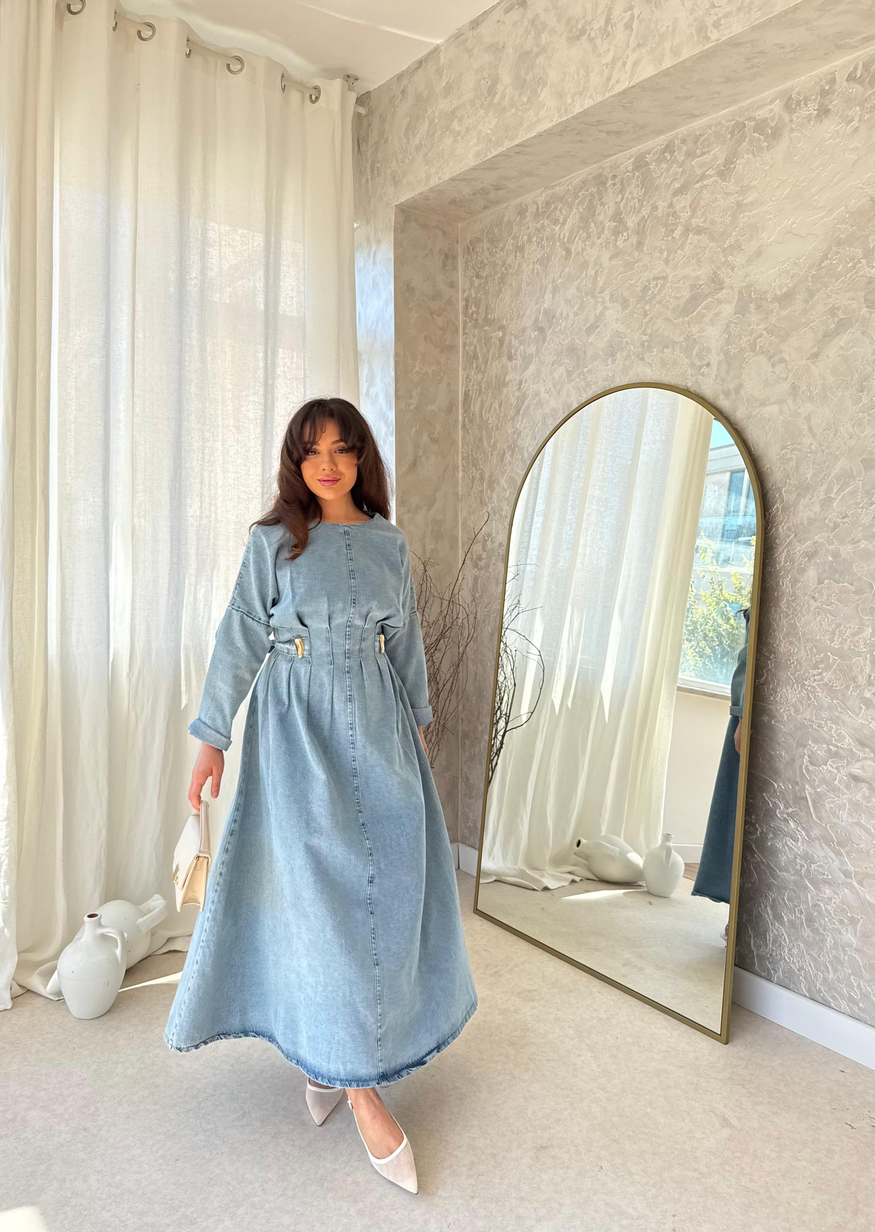 ELBS-006H&R ButikYanı Detaylı Kot Elbise Mavi